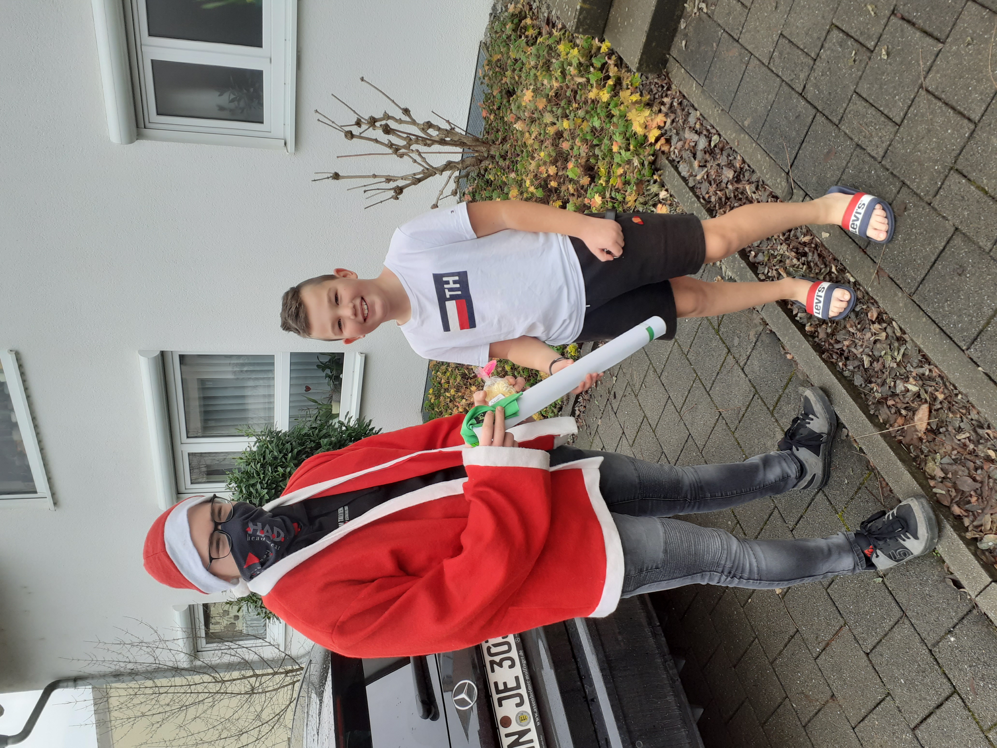 Sandro und Samuel überreichten einen großen Wandkalender, damit die Geburtstage der Kids und Betreuer nicht mehr zu übersehen sind, zudem überbrachten sie die Weihnachtsgrüße der Betreuer, mit der Hoffnung auf baldige gemeinsame Samstags- und Sonntags Ausfahrten.