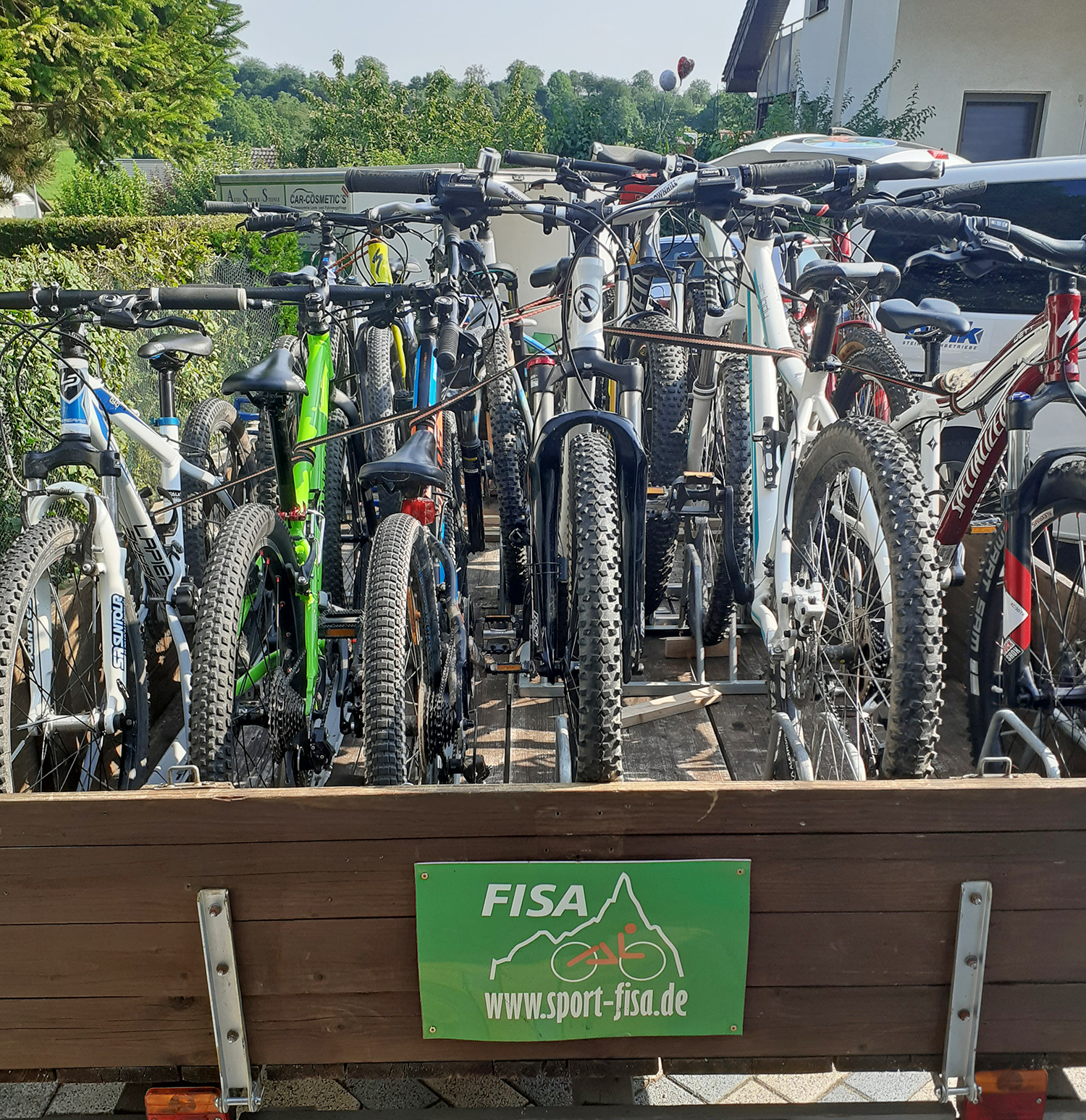 Jedes Kind hat sein Fahrrad schon Tage zuvor zu Johann gebracht und auf die FISA-Hänger verladen. Pünktlich fuhren die Busse los. 16 Kinder und 4 Betreuer waren an Bord. Für Unterhaltung haben die Kinder selbst gesorgt. Nach 3 Stunden sind wir endlich am Bernerhof angekommen.