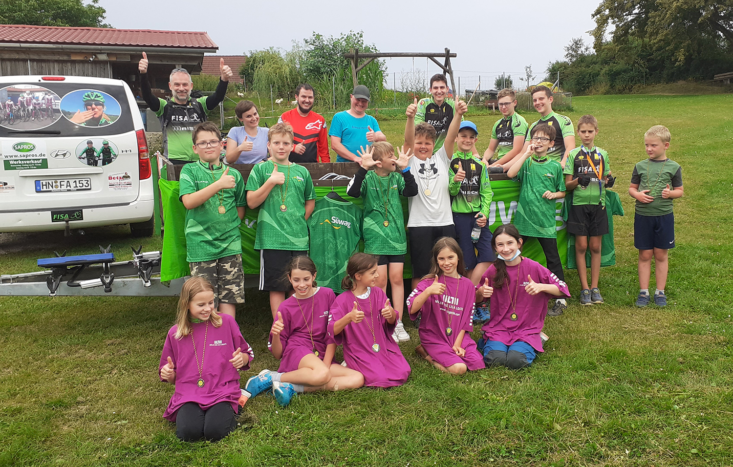 Am Bernerhof angekommen war an Ruhe nicht zu denken, einige Kids spielten Fußball oder machten mit ihren MTB Kunststücke. Unsere Betreuer haben inzwischen, mit fleißigen Helfern, verschiedene Spiele aufgebaut. Es wurden mehrere Teams gebildet: