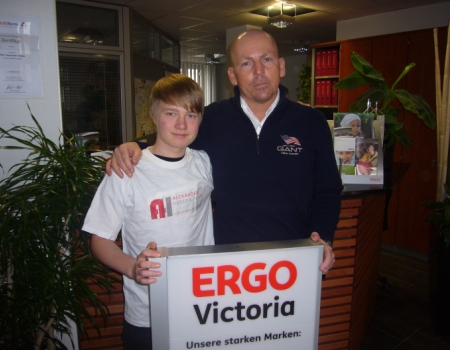 Gemeinsam sind wir, Patenkind Yannick Bässler, Herr Jäger und ich, wieder mal nach nach Ilsfeld gefahren. Am König-Wilhelms-Platz erwartete uns Alexander Huber, der Inhaber des ERGOVictoria Büros in Ilsfeld. Nach einer kurzen Begrüßung nahmen wir Platz. Ich forderte Yannick auf, mit dem Gespräch zu beginnen, da er das Patenkind ist. Seine erste Frage war dann, seit wann es ERGO gibt. Alexander antwortete, dass es ERGO an sich schon seit 1853 gebe. Sein Büro gibt es seit 1993. Es war für uns auch interessant zu wissen, dass er zwölf Jahre Vorstand im Sportverein Schozach und fünf Jahre Mitglied im Gemeinderat Ilsfeld war. Um uns kennenzulernen tauschten wir persönliche Geschichten aus. Alexander interessierte sich für Yannicks sportliche Zukunft, worauf Yannick sagte, dass er im Hobbybereich bleiben wolle, jedoch mindestens drei Wettkämpfe pro Jahr machen wolle. Dadurch sind wir darauf gekommen, dass Alexander mit seiner Frau dieses Jahr ein Trans-Alp absolvieren möchte, das heißt sie möchten mit dem Fahrrad über die Alpen nach Italien fahren. Als sich Herr Jäger in das Gespräch einbrachte, indem er sagte, Frau Huber wünsche sich ein Elektrofahrrad, um bei Alexander mithalten zu können, meinte Yannick, dass es doch deutlich günstiger sei, Alexander einfach mehr Gepäck zu geben... Dann würde er schon langsamer werden. Wir sprachen auch über Praktikum und Ausbildung bei Alexander. „Egal was du machst,“ meinte er, „es muss Spaß machen!“ Darauf standen wir auf und verabschiedeten uns von einem netten Gespräch.