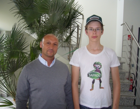 Unser vorerst letztes Patentreffen hatten wir, Herr Jäger und ich, mit Patenkind Noah Wein, aus Abstatt, bei Lars Tschritter, Zahnarzt im Zahnärztehaus Ilsfeld. Nachdem wir wenige Minuten im Wartezimmer warten mussten, da wir ein bisschen zu Früh waren, zeigte uns Herr Tschritter den Weg in sein Büro. Um in das Gespräch zu kommen, erzählte Noah erst einmal von der letzten Sonntagsausfahrt. Noah interessierte es sehr, warum Herr Tschritter Zahnarzt geworden war. Herr Tschritter erklärte uns, er wollte unbedingt einen Job, bei dem man seine Finger benutzen muss. Außerdem erzählte er, dass er unbedingt den medizinischen Bereich wollte und somit noch Zahnarzt oder Chirurg zur Auswahl standen... Er hat sich schließlich für den Beruf als Zahnarzt entschieden. Nachdem er Noahs Frage beantwortet hat, erzählte er uns ein bisschen von sich: Er erzählte, dass er als Kind/Teenager auch Rennrad gefahren sei. Allerdings sei er zwischen der siebten und der achten Klasse vom Rennrad auf das Joggen umgestiegen. Als wir dann zu dem Thema Wettkämpfe kamen, haben wir insbesondere über den Triathlon gesprochen. Noah erzählte Herr Tschritter von dem neuen Schwimmtraining, dass er jetzt schon acht mal Sonntag abends, mit sieben anderen FISA MTB Kids absolviert hat. Kurz vor der Verabschiedung antwortete Herr Tschritter noch auf Noahs Frage, ob der Zahnarztberuf nicht langweilig geworden sei, mit der Erklärung, dass man im Zahnarztberuf nicht nur Zähne ziehen müsse und man ihn mit dem Friseurberuf, dem Beruf von Noahs Mutter, vergleichen könne, da man an dort auch nicht nur Haare schneiden müsse, sondern auch waschen, färben und mehr. | Das aktuell letzte Patentreffen hatten wir, Johann, Markus Riemer und ich, mit Herrn Di Bari, der seit knapp sechs Jahren FISA Unterstützter ist bei seiner Firma „SAPROS Salat und Antipasti“. SAPROS ist ein zusammengesetztes Wort aus Salat und Produktion. Zu Beginn unseres Gesprächs erklärte uns Herr Di Bari, warum er bei der Patenschafts Aktion mitmacht. Er möchte natürlich auch noch mehr über diese Aktion erfahren, weshalb wir ihm dann erzählten, wohin das Geld fließt, wie und warum die Patenschafts Aktion entstanden ist und wohin sie führen soll. Herr Di Bari fragte Markus über unsere Ausfahrten und unser Training aus, wo Markus dann auch erzählen konnte, dass wir auch fleißig jeden Sonntagabend unsere Schwimmtechnik verbessern. Als Herr Di Bari bemerkte, wie fleißig ich die ganze Zeit für diesen Artikel mitschreibe, wollte er dann auch wissen, wo und wann er erscheint. Auf seine Frage antwortete ich ihm und Johann zeigte ihm aus seiner „Pressemappe“ Beispiele anhand der letzten Patenschaftsartikeln. Als er das sah und auch was wir sonst noch so machen, sagte er, er könne sich vorstellen, FISA noch mehr zu unterstützten und würde das auch gerne tun. Markus interessierte dann noch, was „Antipasti“ ist, da er das Wort noch nie gehört hat, und es ja auch unter dem Firmennamen steht. Herr Di Bari erklärte ihm, dass „Antipasti“ ein italienisches Wort ist und so viel wie „vor der Hauptspeiße“, also „Vorspeise“ bedeutet. Er gab uns dann noch Beispiele für „Antipasti Speisen“, wie (gefüllte) Oliven oder Peperoni und mit Käse gefüllten Champignons. Währenddessen stellten wir fest, dass Herrn Di Baris Unternehmen SAPROS und FISA mindestens eins gemeinsam haben... Beide machen etwas mit / in der Natur. Dadurch kamen wir auch kurz zu dem Thema „Wetter“, da gutes Wetter für seine Pflanzen und dadurch für sein Unternehmen sehr wichtig ist und Radfahren bei schönem Wetter auch schöner ist... Da wir gerade über SAPROS sprachen erzählte Herr Di Bari uns noch mehr: Es arbeiten viele Landwirte und Gärtnereien aus der Umgebung für SAPROS. Sie schneiden Salat, das Gemüse, die Antipasti Gerichte und ähnliches und machen eventuell den Salat noch an. Dann liefern sie ihre Produkte an verschiedene Kantinen und in den Gastronomiebereich. Kurz bevor wir noch ein Foto machten und uns dann verabschiedeten kamen wir nochmal auf die Sonntagsausfahrten und Fahrradmarken und Fahrradhändler zurück, da sich Herr Di Bari ein neues Rad anschaffen möchte und sich bei uns noch Ideen holen wollte. |